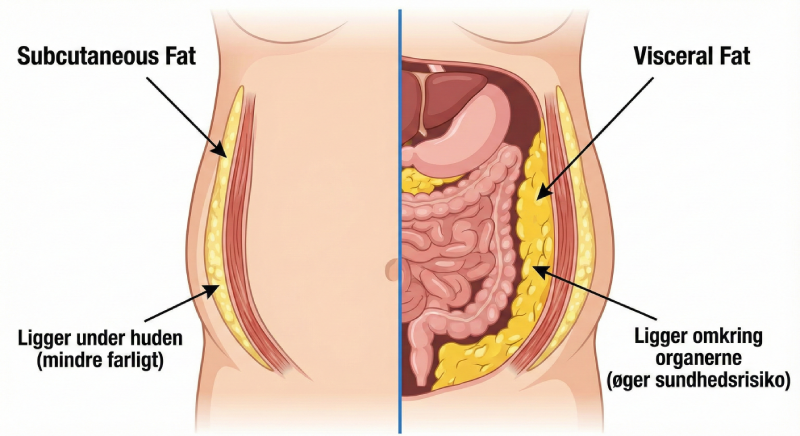Fedt er ikke bare fedt. Det fedt, der sætter sig omkring taljen og indre organer (visceralt fedt), er mere biologisk aktivt og skadeligt end det fedt, der sidder på hofter og lår. Et forhøjet taljemål er derfor stærkt forbundet med øget risiko for hjerte-kar-sygdomme og type 2-diabetes.